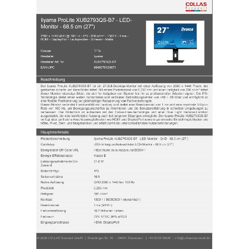 Produktinformationen "Iiyama ProLite XUB2793QS-B7 - LED-Monitor - 68.5 cm (27")"