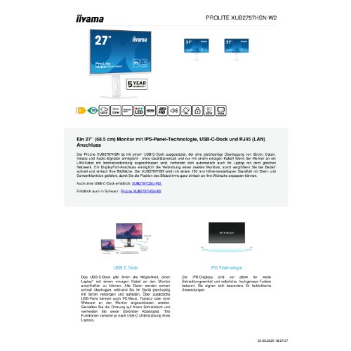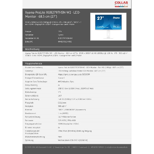 Produktinformationen "Iiyama ProLite XUB2797HSN-W2 - LED-Monitor - 68.5 cm (27")"