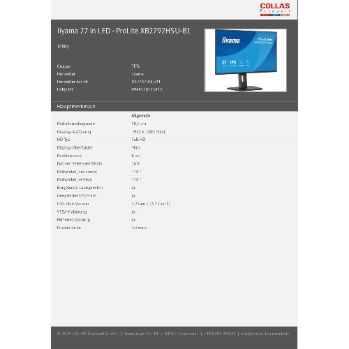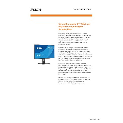 Jetzt anmeldenProduktinformationen "Iiyama XB2797HSU-B1 27" LCD Full HD IPS Black - 27" - IPS"