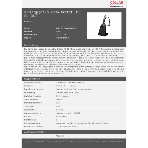Jetzt anmeldenProduktinformationen "Jabra Engage 45 SE Mono - Headset - On-Ear - DECT"
