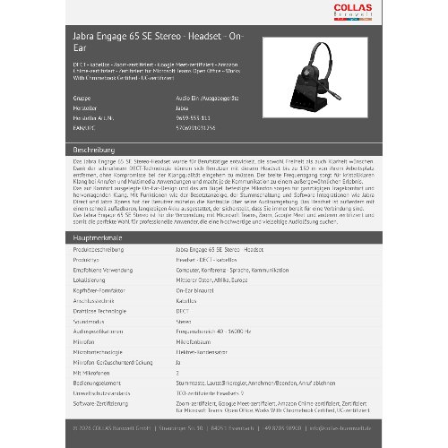Jetzt anmeldenProduktinformationen "Jabra Engage 65 SE Stereo - Headset - On-Ear"