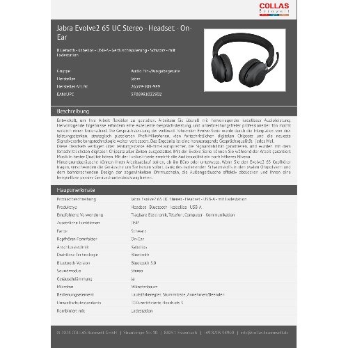 Jetzt anmeldenProduktinformationen "Jabra Evolve2 65 UC Stereo - Headset - On-Ear"