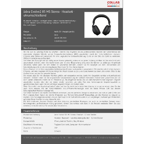 Jetzt anmeldenProduktinformationen "Jabra Evolve2 85 MS Stereo - Headset - ohrumschließend"