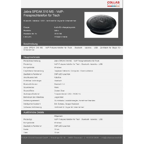 Jetzt anmeldenProduktinformationen "Jabra SPEAK 510 MS - VoIP-Freisprechtelefon für Tisch"