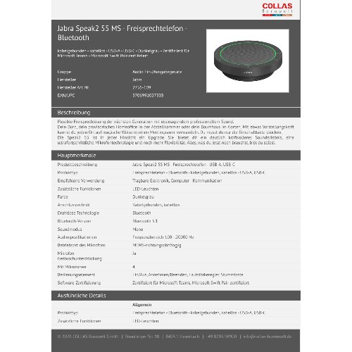 Jetzt anmeldenProduktinformationen "Jabra Speak2 55 MS - Freisprechtelefon - Bluetooth"