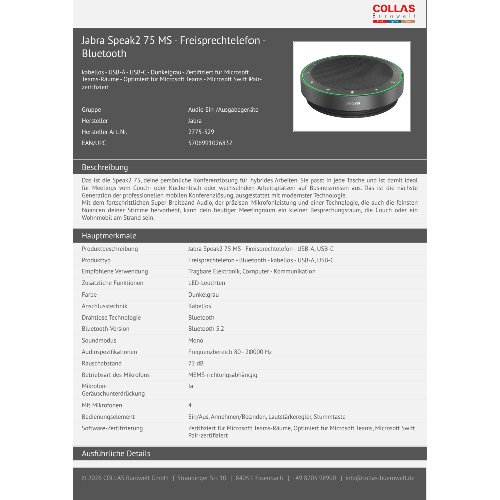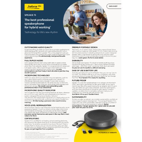 Jetzt anmeldenProduktinformationen "Jabra Speak2 75 MS - Freisprechtelefon - Bluetooth"