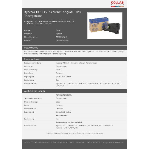 Jetzt anmeldenProduktinformationen "Kyocera TK 1115 - Schwarz - original - Box - Tonerpatrone"