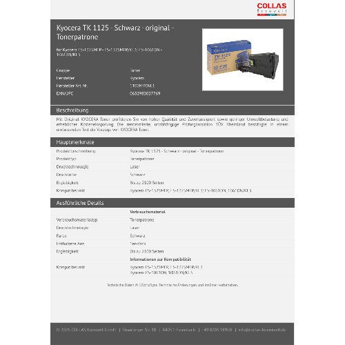 Jetzt anmeldenProduktinformationen "Kyocera TK 1125 - Schwarz - original - Tonerpatrone"