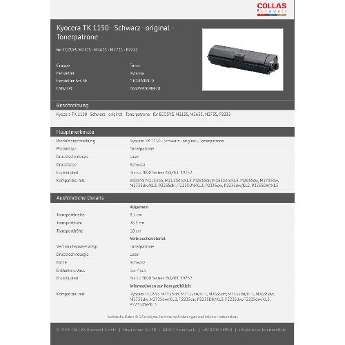 Jetzt anmeldenProduktinformationen "Kyocera TK 1150 - Schwarz - original - Tonerpatrone"