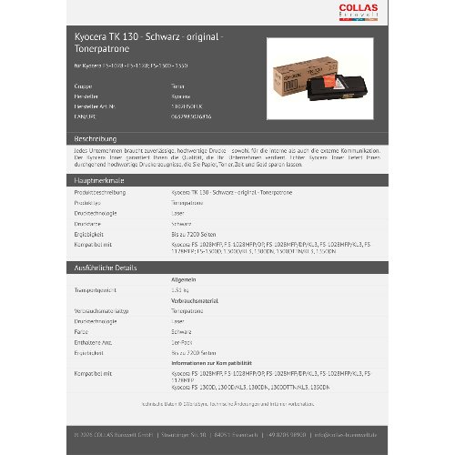 Jetzt anmeldenProduktinformationen "Kyocera TK 130 - Schwarz - original - Tonerpatrone"