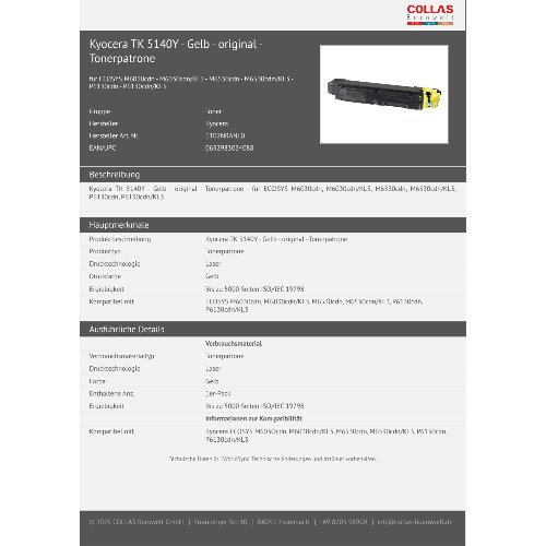 Jetzt anmeldenProduktinformationen "Kyocera TK 5140Y - Gelb - original - Tonerpatrone"