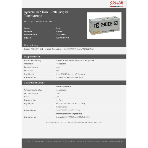 Jetzt anmeldenProduktinformationen "Kyocera TK 5160Y - Gelb - original - Tonerpatrone"