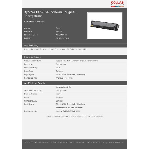 Jetzt anmeldenProduktinformationen "Kyocera TK 5205K - Schwarz - original - Tonerpatrone"