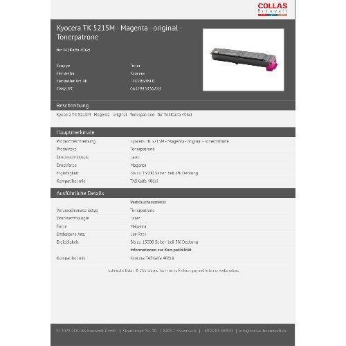 Jetzt anmeldenProduktinformationen "Kyocera TK 5215M - Magenta - original - Tonerpatrone"