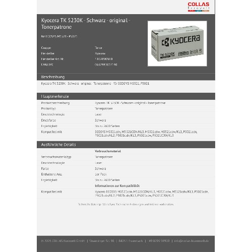 Jetzt anmeldenProduktinformationen "Kyocera TK 5230K - Schwarz - original - Tonerpatrone"