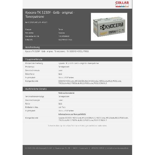 Jetzt anmeldenProduktinformationen "Kyocera TK 5230Y - Gelb - original - Tonerpatrone"