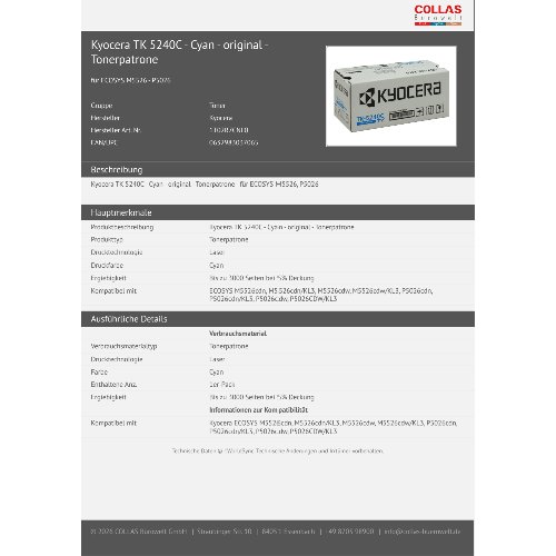 Jetzt anmeldenProduktinformationen "Kyocera TK 5240C - Cyan - original - Tonerpatrone"