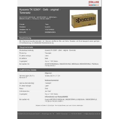 Jetzt anmeldenProduktinformationen "Kyocera TK 5280Y - Gelb - original - Tonersatz"