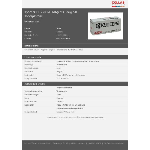 Jetzt anmeldenProduktinformationen "Kyocera TK 5305M - Magenta - original - Tonerpatrone"