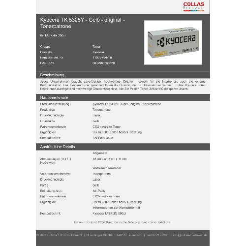 Jetzt anmeldenProduktinformationen "Kyocera TK 5305Y - Gelb - original - Tonerpatrone"