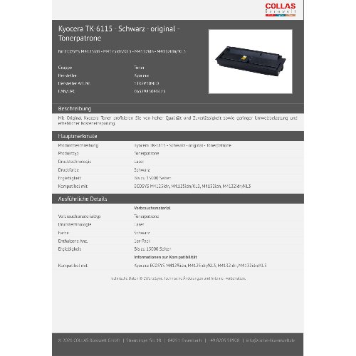Jetzt anmeldenProduktinformationen "Kyocera TK-6115 - Schwarz - original - Tonerpatrone"