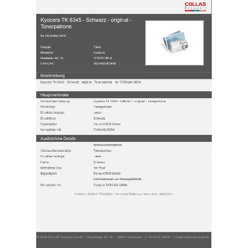 Jetzt anmeldenProduktinformationen "Kyocera TK 6345 - Schwarz - original - Tonerpatrone"