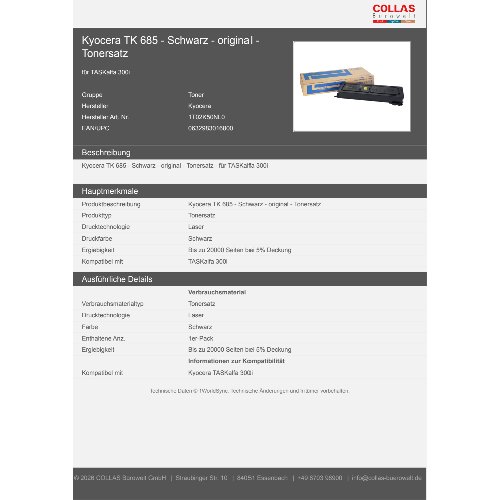 Jetzt anmeldenProduktinformationen "Kyocera TK 685 - Schwarz - original - Tonersatz"