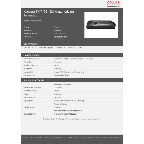 Jetzt anmeldenProduktinformationen "Kyocera TK 7135 - Schwarz - original - Tonersatz"