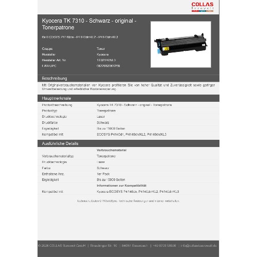 Jetzt anmeldenProduktinformationen "Kyocera TK 7310 - Schwarz - original - Tonerpatrone"