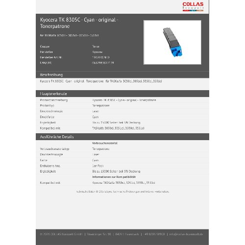 Jetzt anmeldenProduktinformationen "Kyocera TK 8305C - Cyan - original - Tonerpatrone"