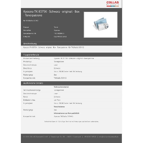Jetzt anmeldenProduktinformationen "Kyocera TK 8375K - Schwarz - original - Box - Tonerpatrone"