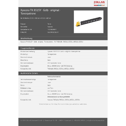 Jetzt anmeldenProduktinformationen "Kyocera TK 8515Y - Gelb - original - Tonerpatrone"
