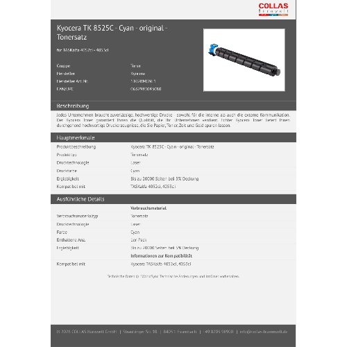 Jetzt anmeldenProduktinformationen "Kyocera TK 8525C - Cyan - original - Tonersatz"