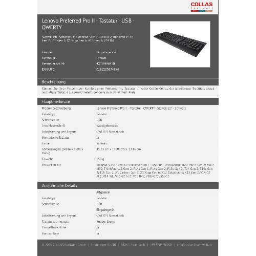 Jetzt anmeldenProduktinformationen "Lenovo Preferred Pro II - Tastatur - USB - QWERTY"