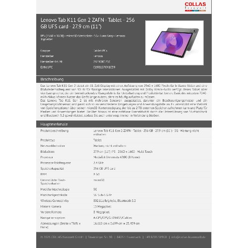 Jetzt anmeldenProduktinformationen "Lenovo Tab K11 Gen 2 ZAFN - Tablet - 256 GB UFS card - 27.9 cm (11")"
