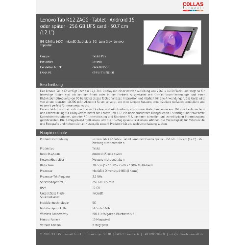 Jetzt anmeldenProduktinformationen "Lenovo Tab K12 ZAGG - Tablet - Android 15 oder später - 256 GB UFS card - 30.7 cm (12.1")"