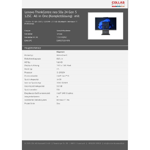 Jetzt anmeldenProduktinformationen "Lenovo ThinkCentre neo 50a 24 Gen 5 - 60.5 cm 23.8" - Full HD - Intel Core? i5 - All-in-One mit Monitor - Core i5"