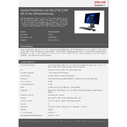 Jetzt anmeldenProduktinformationen "Lenovo ThinkCentre neo 50a 27 G5 12SA - All-in-One (Komplettlösung)"
