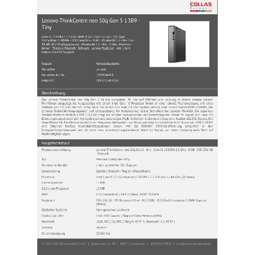 Jetzt anmeldenProduktinformationen "Lenovo ThinkCentre neo 50q Gen 5 13B9 - Tiny"
