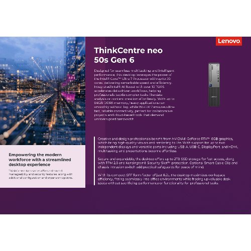 Jetzt anmeldenProduktinformationen "Lenovo ThinkCentre neo 50s Gen 6 13DM - SFF - Core Ultra 5 225"
