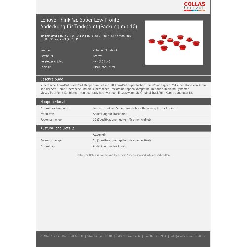 Jetzt anmeldenProduktinformationen "Lenovo ThinkPad Super Low Profile - Abdeckung für Trackpoint (Packung mit 10)"