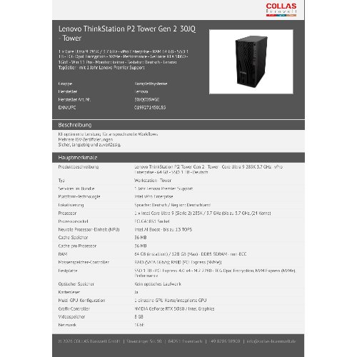 Jetzt anmeldenProduktinformationen "Lenovo ThinkStation P2 Tower Gen 2 30JQ - Tower"