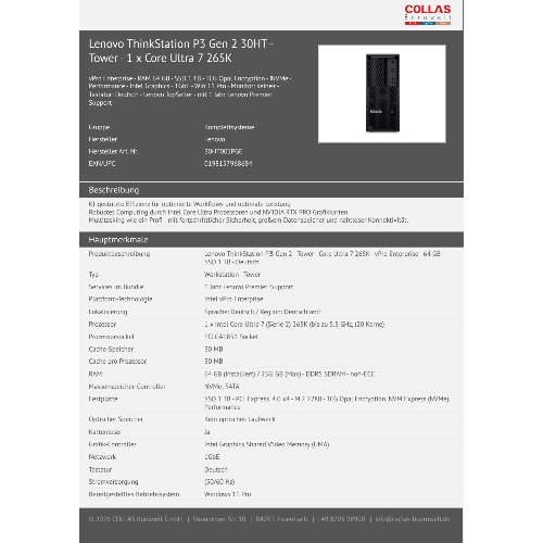 Jetzt anmeldenProduktinformationen "Lenovo ThinkStation P3 Gen 2 30HT - Tower - 1 x Core Ultra 7 265K"