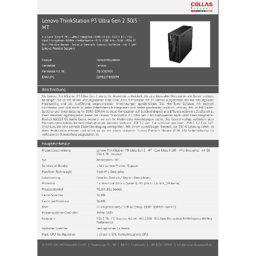 Jetzt anmeldenProduktinformationen "Lenovo ThinkStation P3 Ultra Gen 2 30J5 - MT"