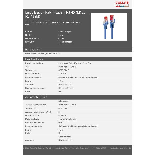 Jetzt anmeldenProduktinformationen "Lindy Basic - Patch-Kabel - RJ-45 (M) zu RJ-45 (M)"