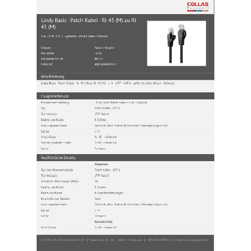 Jetzt anmeldenProduktinformationen "Lindy Basic - Patch-Kabel - RJ-45 (M) zu RJ-45 (M)"
