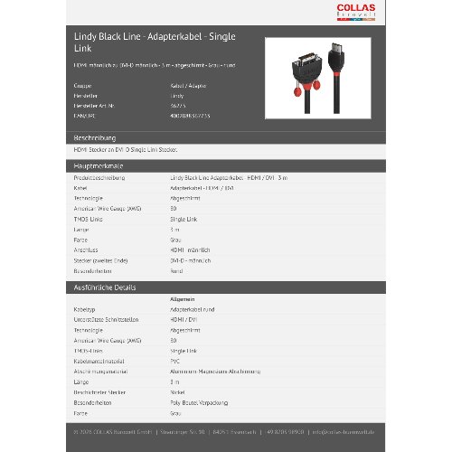 Jetzt anmeldenProduktinformationen "Lindy Black Line - Adapterkabel - Single Link"
