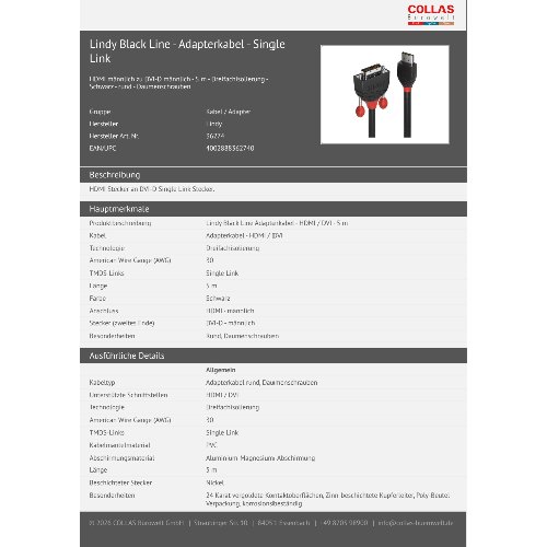 Jetzt anmeldenProduktinformationen "Lindy Black Line - Adapterkabel - Single Link"