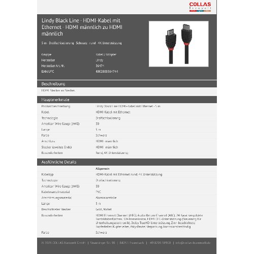 Jetzt anmeldenProduktinformationen "Lindy Black Line - HDMI-Kabel mit Ethernet - HDMI männlich zu HDMI männlich"
