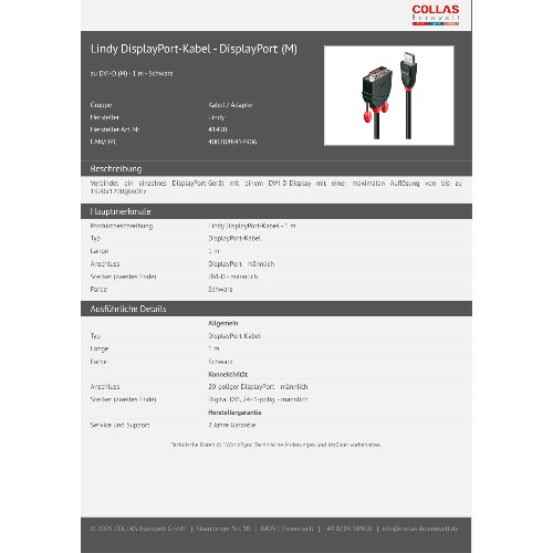Jetzt anmeldenProduktinformationen "Lindy DisplayPort-Kabel - DisplayPort (M)"